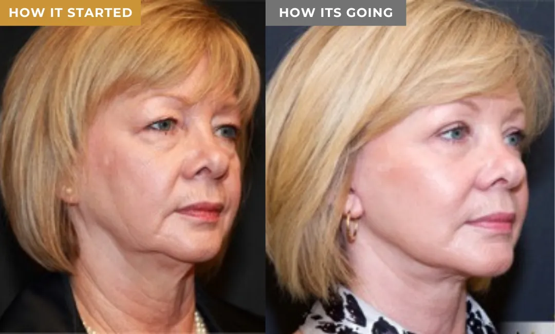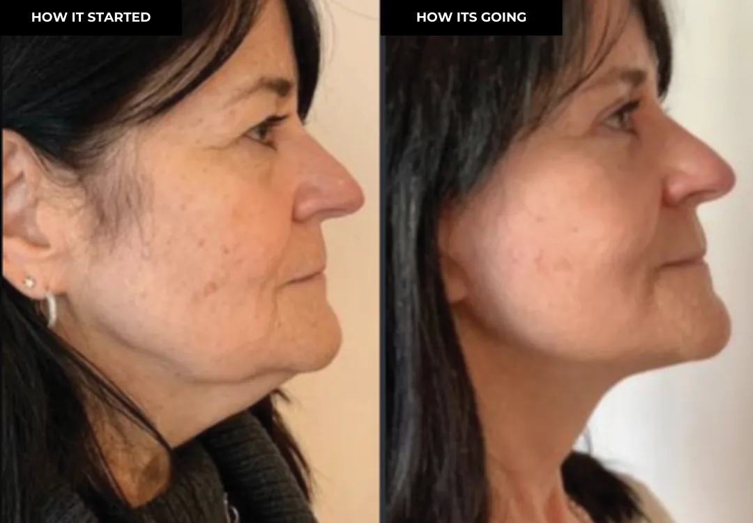 This will lift & tighten your lower face (jowls), will fade the appearance of any fine lines & wrinkles, while eliminating stubborn chin fat causing a double chin. Visibly erasing 5-10 years off your appearance, allowing you to love the lady that looks back at you in the mirror & feel comfortable & confident in your own skin.